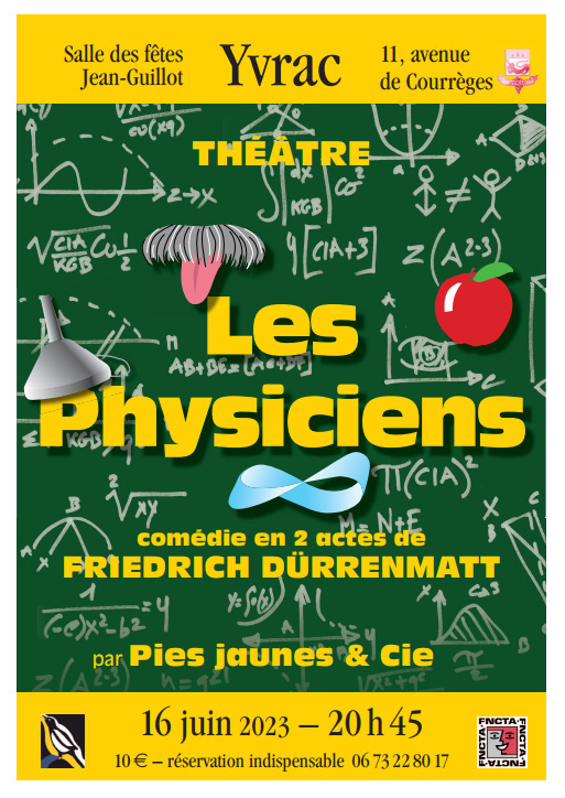 Unité de lieu, de temps et d’action. Dürrenmatt l’a voulu ainsi : « Une pièce qui se joue chez des fous ne s’accommode que de la forme classique. ». Bienvenue à la clinique psychiatrique « Les Cerisiers ». Trois patients y sont enfermés. Ils sont tous les trois physiciens. L’un se prend pour Newton, l’autre se prend pour Einstein, le troisième s’appelle Möbius et prétend avoir des visions du roi Salomon. Hasard ou coïncidence ? En l’espace de trois mois, Newton et Einstein ont tué les infirmières chargées de veiller sur eux. L’inspecteur Richard Voss mène l’enquête… Qui est vraiment fou dans cette histoire ? Et si dans le salon de la villa se jouait (rien que ça !) le sort de l’Humanité ? Convaincu que la comédie grotesque était le seul moyen au théâtre pour dépeindre un monde de plus en plus chaotique, Dürrenmatt écrit cette pièce en 1961 en pleine guerre froide avec la bombe atomique en toile de fond. Oscillant entre le tragique et le comique, le polar et le sitcom, la discussion philosophique et la série B, « Les physiciens » est une réflexion sur la responsabilité morale du savant face au progrès scientifique.